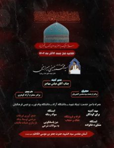 زمان و مکان : جمعه 14 آذر ماه سال 1404 آستان مقدس حضرت جعفر بن موسی الکاظم (علیه السلام)
